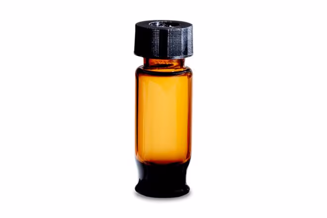 LCMS Certified Amber Glass 12 x 32 mm Screw Neck Max Recovery Vial, with Cap and Preslit PTFE/Silicone Septum, 2 mL Volume, 100/pk