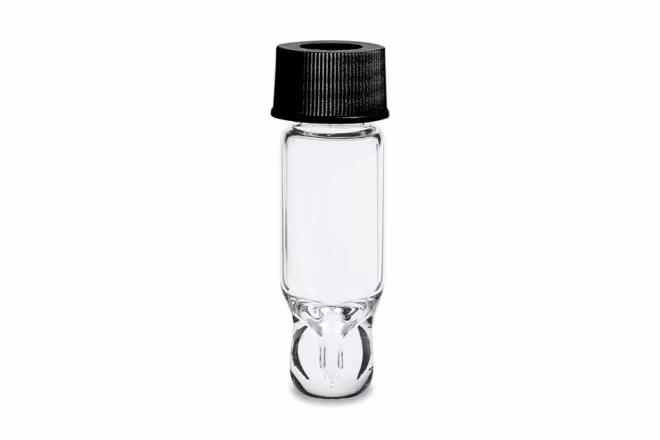 LCGC Certified Clear Glass 8 x 40 mm Snap Neck Total Recovery Vial, with Polyethylene Septumless Cap, 700 µL Volume, 100/pk